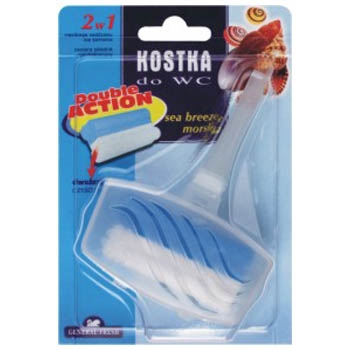 Opis: Specjalnie dobrane składniki kostki zapachowej do WC działają antybakteryjnie, myją muszlę klozetową i zapobiegają osadzaniu się kamienia. Ponadto przy każdorazowym spłukiwaniu odświeżają i tworzą obfitą pianę.”