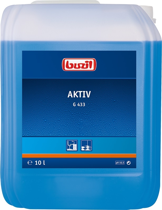 Opis: Uniwersalny preparat do intensywnego czyszczenia i pielęgnacji większości posadzek i nawierzchni wodoodpornych (ramy okienne drzwi, grzejniki, podłogi kamienne. Buzil Aktiv doskonale usuwa zabrudzenia olejowe i tłuszczowe, jest bardzo wydajny i delikatny dla czyszczonej powierzchni posiada przyjemny zapach. Stosowany jako stripper wierzchniej warstwy ochronnej.